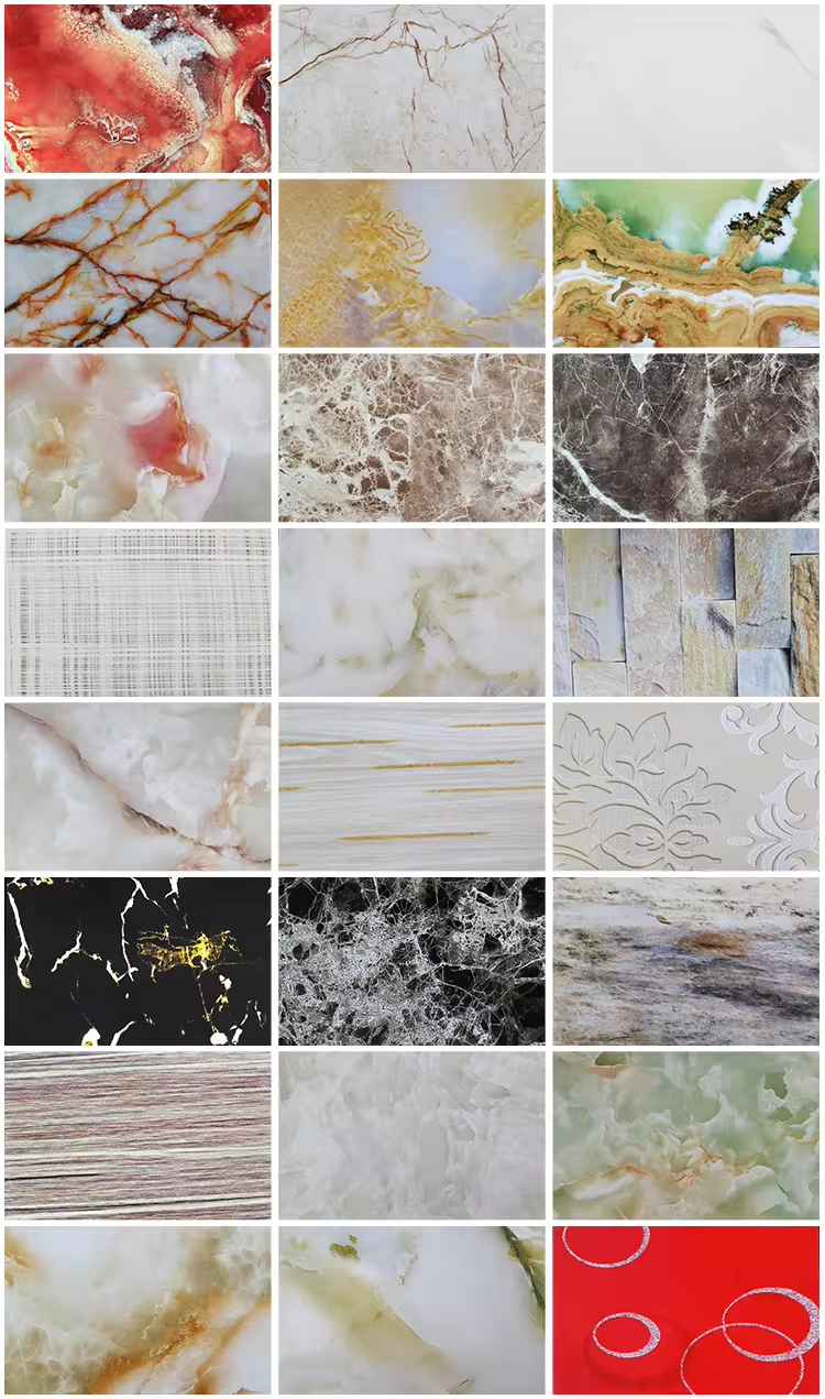 UV marble sheet is a new type of wall decoration material. Its main material is PVC, stone powder and various auxiliary materials. It not only has the appearance of imitating stone texture, but also has excellent moisture-proof, fire-proof, antibacterial, wear-resistant and other characteristics, so it is widely used in public places, home decoration and other fields.